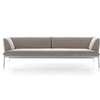 An armchair and sofas of strong image featuring a wide shape cushioning which provides a great comfort and functionality. Frame in extruded aluminium with elastic belts, die-cast aluminium feet. The profile in steel, fi xed to the frame, supports and holds the backrest cushions and the arm. The profile is lacquered in matt black or white, or in gloss white.