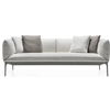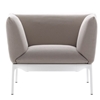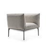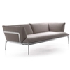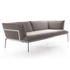 An armchair and sofas of strong image featuring a wide shape cushioning which provides a great comfort and functionality. Frame in extruded aluminium with elastic belts, die-cast aluminium feet. The profile in steel, fixed to the frame, supports and holds the backrest cushions and the arm. The profile is lacquered in matt black or white, or in gloss white.