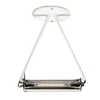 Floor lamp with dimmer. Frame in chromed CR or satined nickel-plated NS metal. Chromed steel lamp holder. Anodized aluminium reflector. Braided black and white fabric cable, black dimmer and plug. Bulb, dimmer and reflector included.