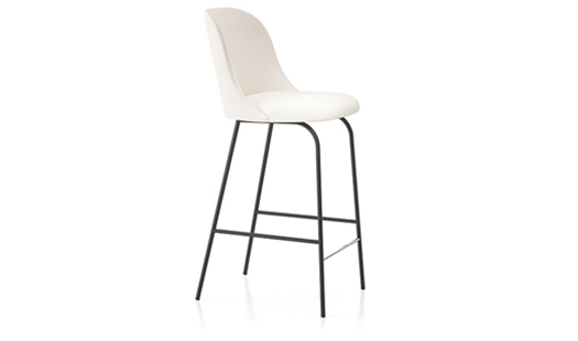Calibrated steel structure with brass finish or powder coated in thermoreinforced polyester in white, black, sand or altea blue, and footrest in stainless steel. Moulded plywood seat and backrest. Expanded polyuretane foam. Black or white injection polypropylene glides.